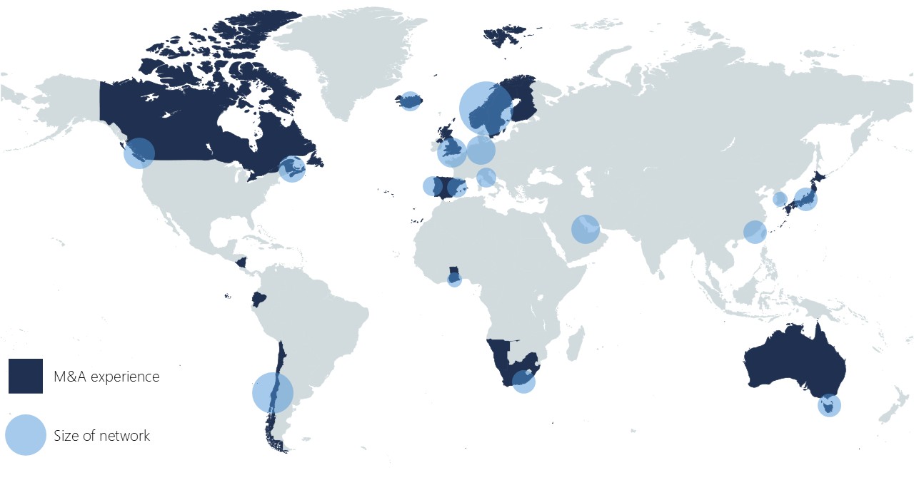 Vårt internasjonale nettverk gir oss direkte tilgang til investorer, kjøpere og industrielle partnere på tvers av markeder.